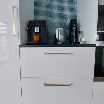 Gouden handgrepen zijn bij Yessential verkrijgbaar in diverse stijlen en in diverse maten. Het kleinste formaat is 64 mm. Wil je een handgreep van goud met een groter formaat? Kies dan bijvoorbeeld voor de 640 mm. Op zoek naar gouden meubelknoppen? Ook die hebben we in een vierkant en ronde vorm.