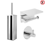 Is jouw toilet zo goed als klaar, maar wil je liever niet boren en wil je een stijlvolle look in een handomdraai? Kies dan voor deze 3-delige toilet accessoires set! Deze set bestaat uit drie verschillende accessoires die direct klaar zijn voor gebruik. Je hoeft niet te boren of iets op te meten, de accessoires geven je toilet direct de uitstraling waarnaar je op zoek bent. Geen technische kennis vereist of gereedschap, zeer gemakkelijk te monteren en daarom ideaal voor een snelle en makkelijke renovatie. De WC-accessoires in het chroom hebben een moderne, luxe minimalistische stijl en passen bij elk interieur. Ze zijn gemakkelijk schoon te maken, te verplaatsen te maken en zullen jarenlang meegaan.