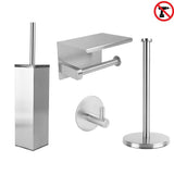 Is jouw toilet zo goed als klaar, maar wil je liever niet boren en wil je een stijlvolle look in een handomdraai? Kies dan voor deze 4-delige toilet accessoires set! Deze set bestaat uit vier verschillende accessoires die direct klaar zijn voor gebruik. Je hoeft niet te boren of iets op te meten, de accessoires geven je toilet direct de uitstraling waarnaar je op zoek bent. Geen technische kennis vereist of gereedschap, zeer gemakkelijk te monteren en daarom ideaal voor een snelle en makkelijk resultaat. De RVS WC-accessoires hebben een moderne, minimalistische stijl en passen bij elk interieur. Ze zijn gemakkelijk schoon te maken, te verplaatsen te maken en zullen jarenlang meegaan.