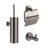 1x Branco Toilettenbürstenhalter + Bürste Gunmetal 1x Julio Toilettenpapierhalter mit Deckel Gunmetal