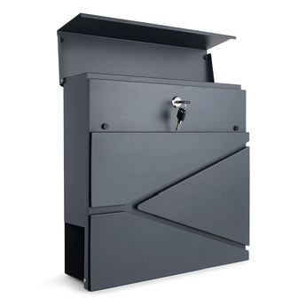 Suchen Sie einen neuen Briefkasten? Dann sind Sie hier richtig! Unser anthrazitfarbener Sergio-Briefkasten ist der moderne Briefkasten, der perfekt zu Ihrem Zuhause oder Ihren Geschäftsräumen passt. Der Sergio-Briefkasten ist in einem edlen Anthrazitgrau mit künstlerischen Linien gehalten. Dadurch ist der Sergio-Briefkasten zeitlos und passt perfekt zu verschiedenen Architektur- und Einrichtungsstilen. Die Oberseite des Briefkastens ist mit einer (schweren) Klappe mit einem Einwurfschlitz darunter ausgestattet, sodass Post einfach und sicher eingeworfen werden kann. Unten befindet sich ein Einwurfschlitz, in den beispielsweise eine Zeitung oder Werbeprospekte passen. Der Briefkasten kann nur durch Öffnen des mitgelieferten Schlüssels geleert werden – sehr sicher!