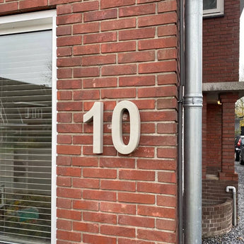 Ist Ihre Hausnummer schwer lesbar und muss ausgetauscht werden? Mit den Beton-Hausnummern und -buchstaben von Enrico gehört das der Vergangenheit an! Verleihen Sie Ihrem Zuhause mit den dreidimensionalen Betonnummern einen robusten Look. Ideal für den Außenbereich. Die Hausnummern sind mit einer unsichtbaren Befestigung mit Gewindestiften versehen. Beton ist größtenteils ein Naturprodukt und die Hausnummern werden in Handarbeit gefertigt. Jede Beton-Hausnummer von Enrico ist daher ein Unikat und kann leichte Unterschiede in Aussehen und Farbe aufweisen.