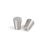 With a conical stainless steel furniture knob you can give your furniture a unique look . This furniture knob is made of durable aluminum and has a matt brushed finish . The knob is easy to mount with the supplied screw and has a standard M4 thread size . Available in different colors , so you can always find the perfect match for your furniture .