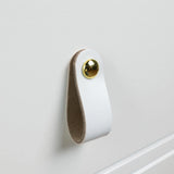 Give your kitchen, cabinets and/or furniture a new look? Our natural leather handles are made of high-quality leather for long-lasting use. The leather handles are perfectly suited in combination with materials such as dark (but also light) backgrounds, wood and/or steel. Thanks to the included screw and golden knob, these leather handles are very easy to assemble.