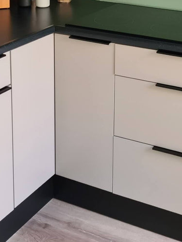 Using long handles on cabinets and kitchens not only provides functionality, but it also helps create a cohesive and attractive look in the room.