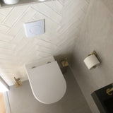 Give your bathroom and/or toilet a stylish look with this square Deluxe Gold-colored roll holder! Gold bathroom accessories provide a trendy look in every bathroom. The design of the toilet roll holder is square, which gives it a modern and luxurious look. In addition, the design of the Vero is timeless. Because the toilet roll holder is made of high-quality, hardened and corrosion-resistant stainless steel, it is for years of use.