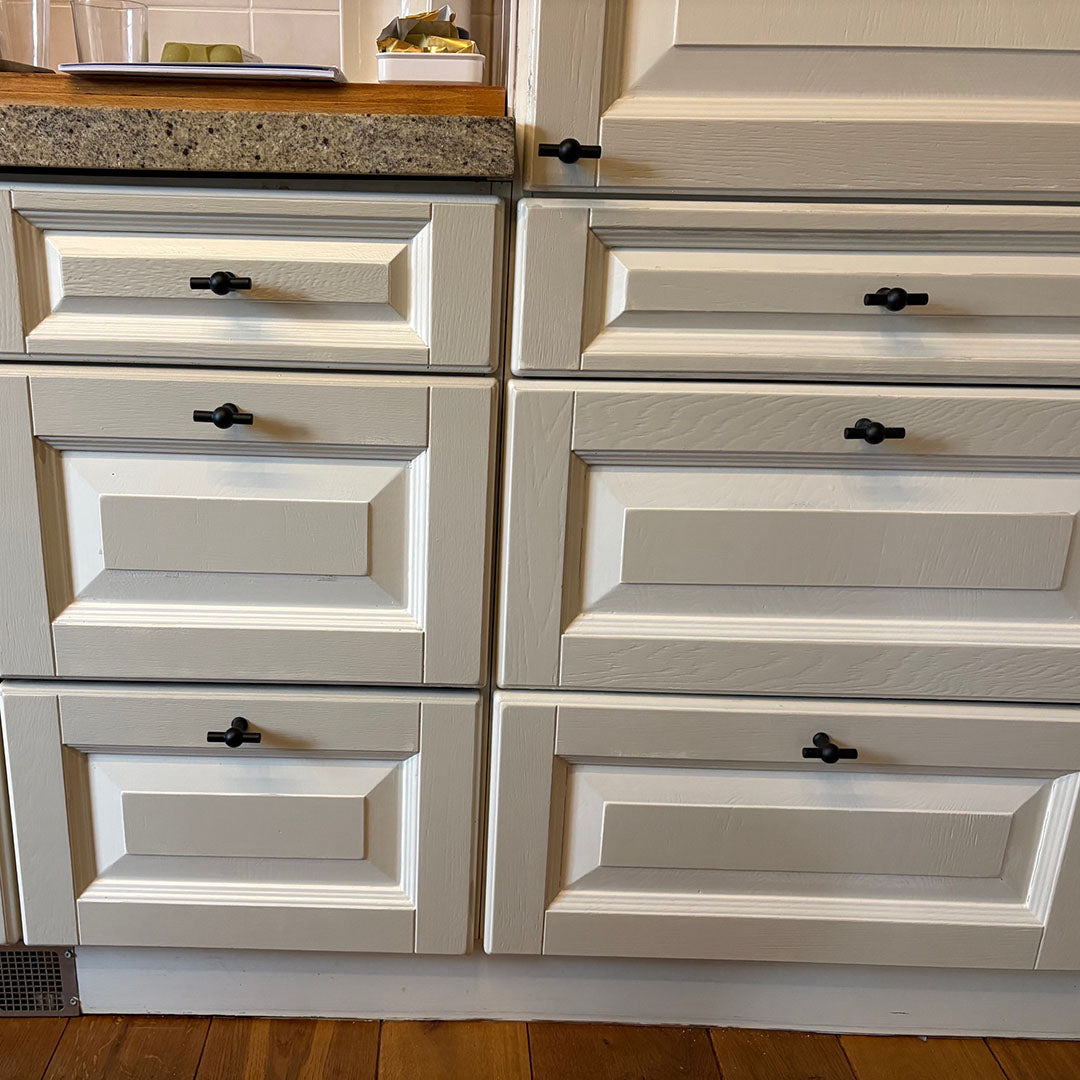 Give your furniture a modern and stylish look with these T-shaped knobs in matte black. The subtle design with a slight curve in the center provides extra grip and a refined look. Perfect for kitchen drawers, cabinet doors, dressers, and other furniture.