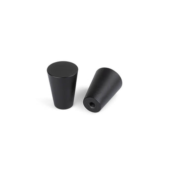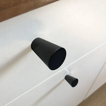 With a conical black furniture knob you can give your furniture a unique look . This furniture knob is made of durable aluminum and has a matte black finish . The knob is easy to mount with the supplied screw and has a standard M4 thread size . This knob gives your furniture a contemporary and stylish look . Available in different colors , so you can always find the perfect match for your furniture .
