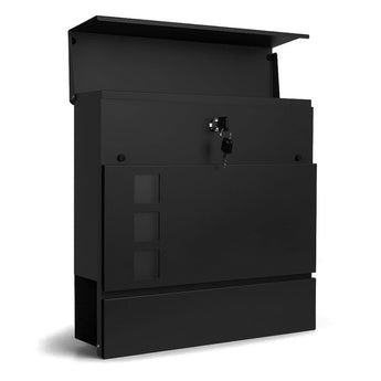 Meet the Nevio Anthracite Gray Mailbox, a stylish and functional addition to your home or office. The Nevio mailbox is finished in a refined anthracite gray color that is both timeless and contemporary, perfectly complementing various architectural and decor styles. The top of the mailbox features a flap with a slot underneath, allowing for easy and secure mail insertion. At the bottom, there's a slot for items like newspapers or advertising flyers. What truly sets the Nevio apart is the convenient exterior display window. This allows you to quickly check if there's mail in the mailbox without having to open it. This saves time and effort and ensures you'll never miss important mail again. The mailbox can only be emptied by opening it with the included key.