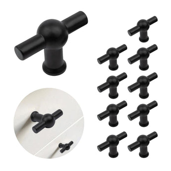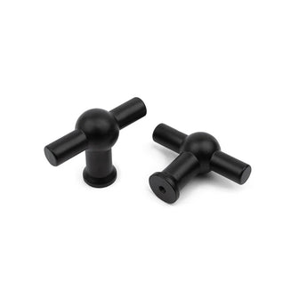 Geef je meubels een moderne en stoere uitstraling met deze T-vormige meubelknoppen in matzwart. Het subtiele ontwerp met een lichte bolling in het midden zorgt voor extra grip en een verfijnde look. Perfect voor keukenlades, kastdeuren, commodes en andere meubels.
