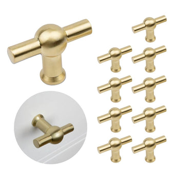 Geef je meubels een moderne en stijlvolle uitstraling met deze T-vormige meubelknoppen in goud. Het subtiele ontwerp met een lichte bolling in het midden zorgt voor extra grip en een verfijnde look. Perfect voor keukenlades, kastdeuren, commodes en andere meubels.