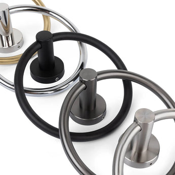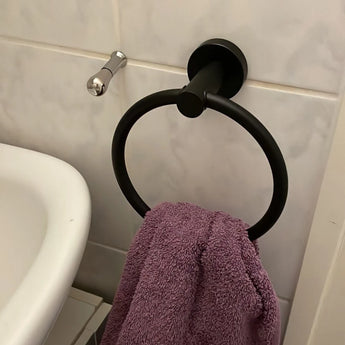 Heb je weinig ruimte, maar wil je toch een mogelijkheid voor het ophangen van een handdoek? Met een handdoekring kun je je handdoek binnen handbereik houden. Het is handig om de handdoekring naast een wastafel of bad te installeren, zodat je gemakkelijk je handen kunt afdrogen of een handdoek kunt pakken na het wassen. Daarbij nemen handdoekringen minder ruimte in beslag dan handdoekstangen of -rekken. Een handige en moderne oplossing om ruimte te besparen! Al met al biedt een handdoekring handige voordelen, waaronder gemakkelijke toegang, ruimtebesparing, organisatie, snelle droging en esthetische waarde. Het is een praktisch en veelzijdig accessoire voor het ophangen van handdoeken in de badkamer.