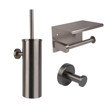 1x Branco - Toiletborstelhouder + borstel Gunmetal 1x Tazio - Toiletrolhouder met klep Gunmetal