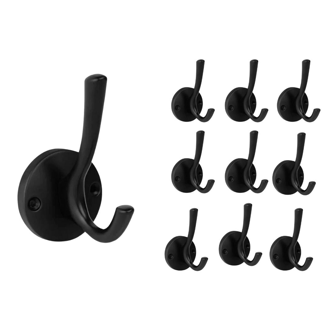 Houd je interieur netjes en georganiseerd met deze set van 10 zwarte kapstokhaken. Geen losse jassen of tassen meer op stoelen of vloeren: hang alles eenvoudig op en creëer direct overzicht. De haakjes zijn stevig en compact, waardoor ze ideaal zijn voor gangen, slaapkamers, badkamers of kantoren.