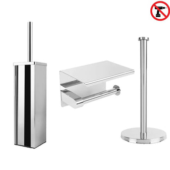 Is jouw toilet zo goed als klaar, maar wil je liever niet boren en wil je een stijlvolle look in een handomdraai? Kies dan voor deze 3-delige toilet accessoires set! Deze set bestaat uit drie verschillende accessoires die direct klaar zijn voor gebruik. Je hoeft niet te boren of iets op te meten, de accessoires geven je toilet direct de uitstraling waarnaar je op zoek bent. Geen technische kennis vereist of gereedschap, zeer gemakkelijk te monteren en daarom ideaal voor een snelle en makkelijke renovatie. De WC-accessoires in het chroom hebben een moderne, luxe minimalistische stijl en passen bij elk interieur. Ze zijn gemakkelijk schoon te maken, te verplaatsen te maken en zullen jarenlang meegaan.